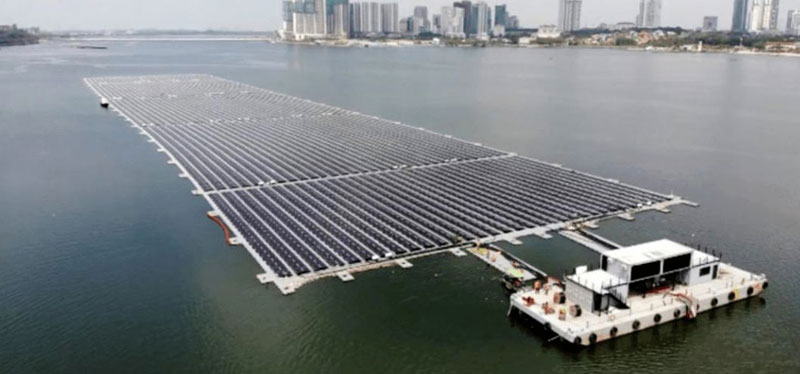 與傳統(tǒng)光伏電站相比,漂浮式光伏是將光伏發(fā)電組件安裝在水面漂浮體上,建造成本更高,但具有多個優(yōu)點。其一,不占用土地資源。其二,漂浮式光伏電站能減少水量蒸發(fā)、改善水質(zhì)、抑制藻類生長,對水產(chǎn)養(yǎng)殖和日常漁獲有益無害。最后,由于水體對光伏組件及電纜的冷卻效果,與地面安裝系統(tǒng)相比,漂浮式光伏電站有效提高了發(fā)電效率。