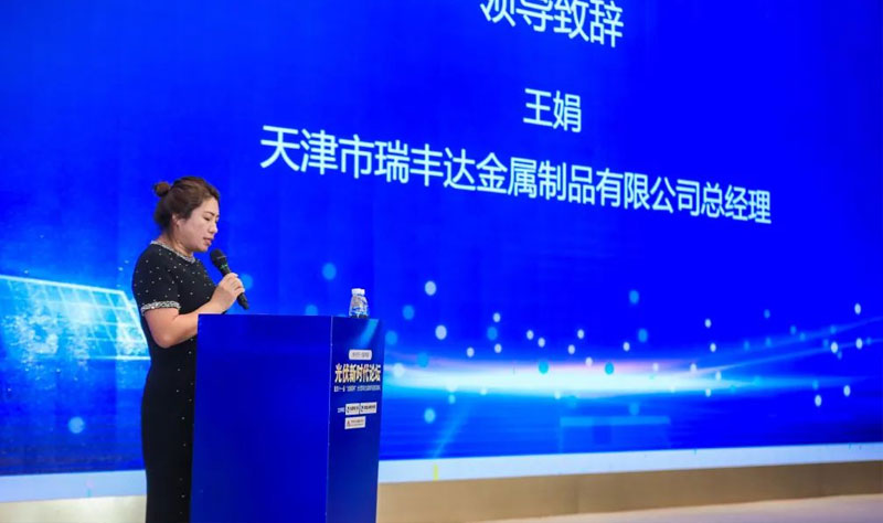 作為本屆論壇的主辦方之一,天津市瑞豐達(dá)金屬制品有限公司總經(jīng)理王總上臺(tái)致辭,歡迎光伏領(lǐng)域的專(zhuān)家學(xué)者、企業(yè)領(lǐng)袖、業(yè)界精英的到來(lái),感謝大家在百忙之中抽出時(shí)間來(lái)到會(huì)議現(xiàn)場(chǎng),大家歡聚一堂、共同探討、深入交流,共議“雙碳”目標(biāo)下光伏產(chǎn)業(yè)發(fā)展思路及未來(lái)展望。