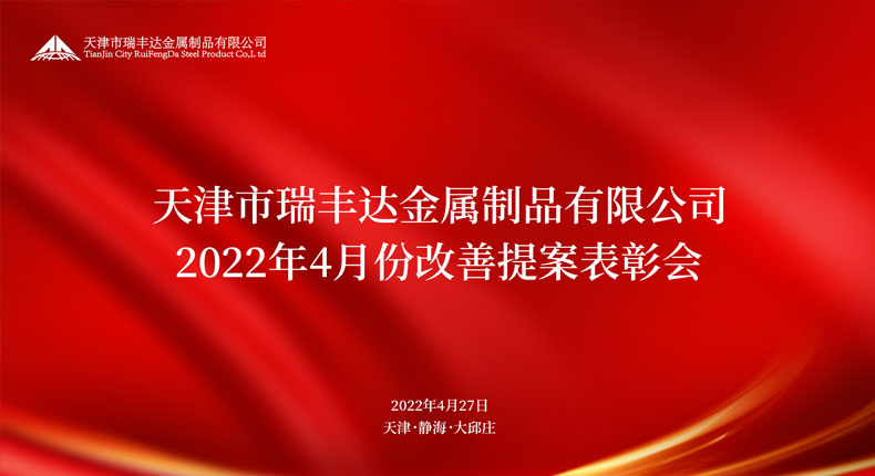 為營造精益求精、不斷創(chuàng)新的改善氛圍,進(jìn)一步激發(fā)員工參與熱情,4月27日,天津市瑞豐達(dá)金屬制品有限公司4月改善提案表彰會(huì)在三樓報(bào)告廳舉行,公司領(lǐng)導(dǎo)張總、公司中層管理人員、標(biāo)準(zhǔn)化咨詢組老師及生產(chǎn)車間全體員工參加本次會(huì)議。